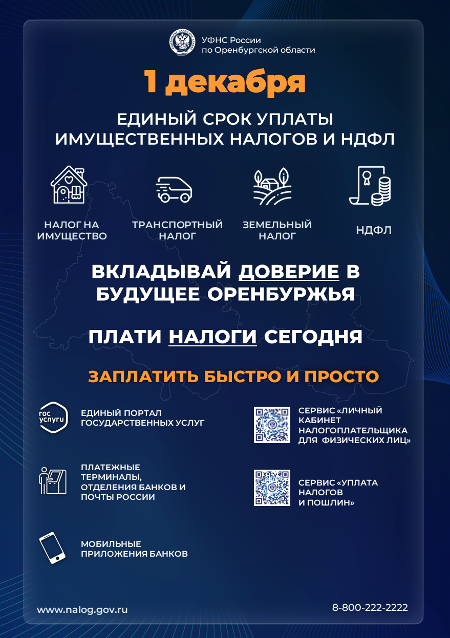 Не позднее 1 декабря 2025 года физические лица обязаны уплатить имущественные налоги (транспортный налог, налог на имущество, земельный налог) и налог на доходы физических лиц (НДФЛ).