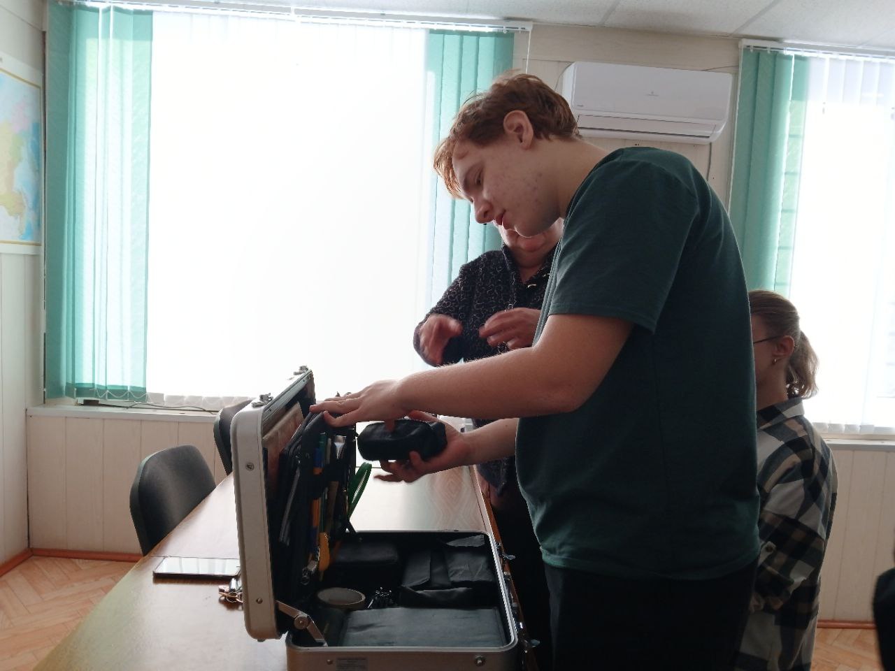 Также, Сергей Шарапов рассказал о работе эксперта - криминалиста и показал ребятам криминалистический чемодан, который предназначен для
